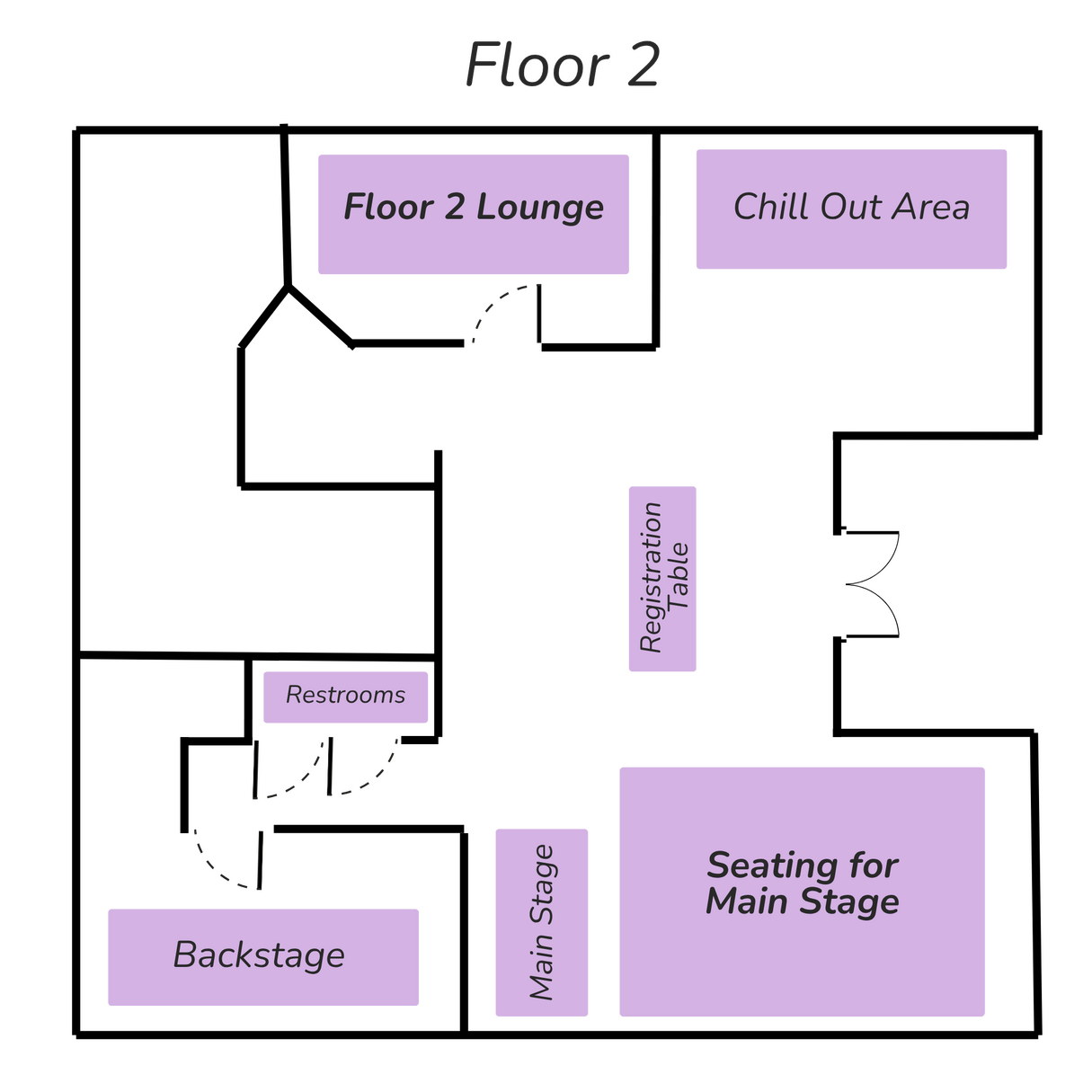 | Time | Main Stage | Floor 2 Lounge | Floor 3 Lounge |